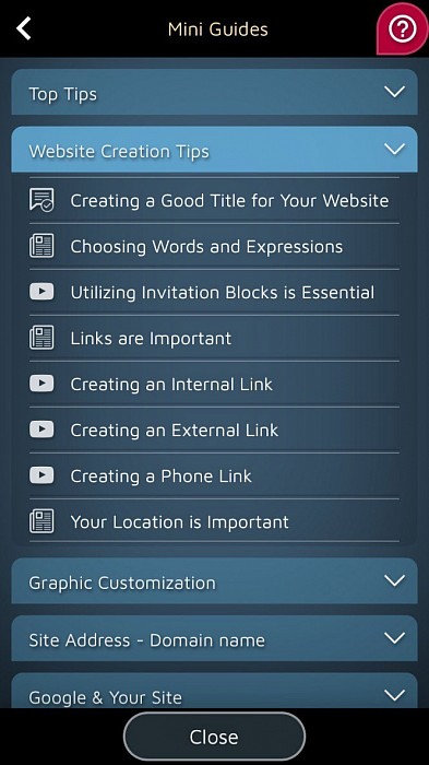 Jotta pääset paremmin alkuun laadukkaan sivuston luomisessa, voit tutustua minioppaiden valikkoon, josta löydät paljon arvokkaita vinkkejä ja neuvoja. Päivitä sivusto Smart- tai Pro- tasolle vain, kun tarvitset lisäominaisuuksia.